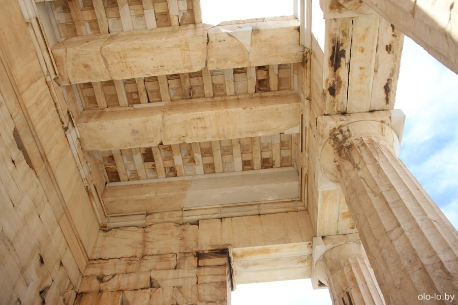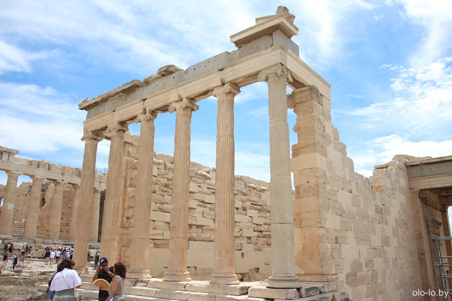 Вход на территорию Акрополя происходит через древнегреческие пропилеи, которые были поострены ориентировочно во второй половине 5-ого века до нашей эры. Афинские пропилеи представляют собой конструкцию состоящую из мраморных дорических и ионических колонн. В последующие века пропилеи пострадали от войн и землетрясения, претерпели несколько реконструкций, прежде чем предстать перед глазами туристов.