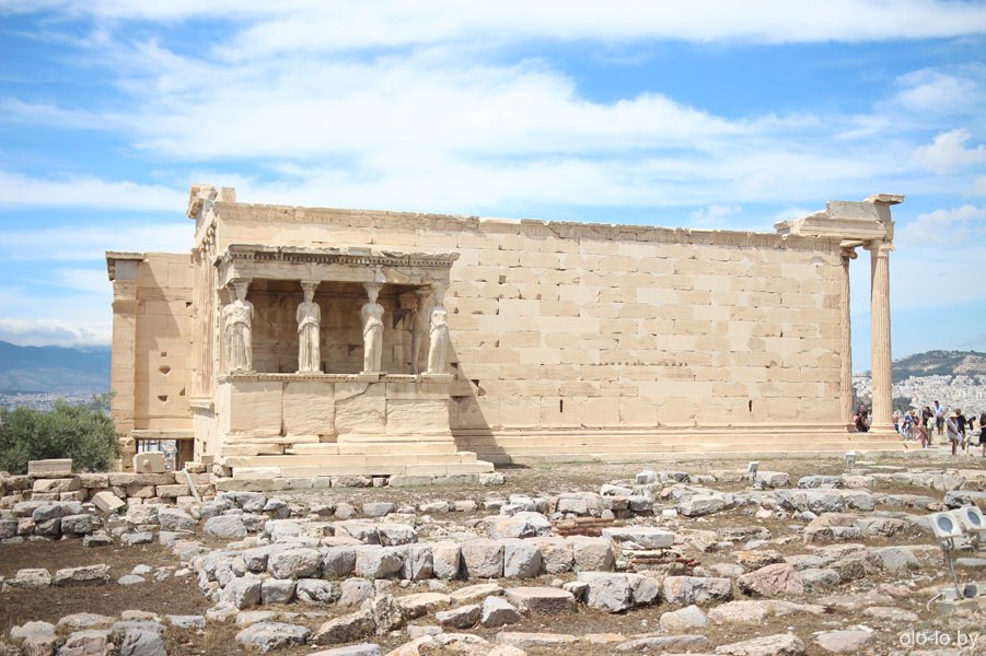 Рядом с Парфеноном находится еще один значимый храм Акрополя. Эрехтейон — храм построенный в в 5-ом веке до нашей эры, на месте, где по преданию Афина и Посейдон спорили за господство в регионе. Конструкция имеет асимметричную форму, поскольку по сути включает в себя несколько храмов. Свое название Эрехтейон получил в честь царя Эрехтея, чью гробницу нашли при раскопках.