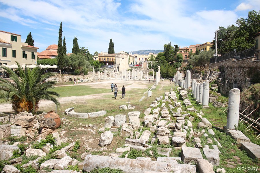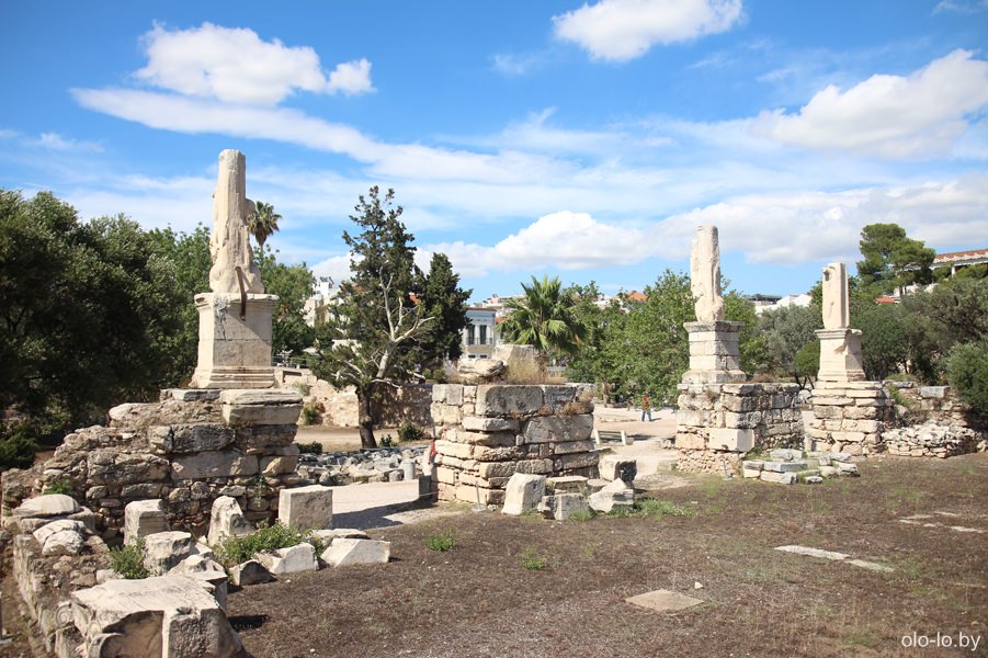 Севернее Акрополя находится Римская Агора или рыночная площадь. Территорию начали застраивать в первом веке нашей эры во то время, когда Афины были в составе Римской империи, откуда и пошло название. Сейчас Агора представляет собой в основном фундаменты и руины торговых рядов, но есть и несколько более-менее сохранившихся построек.