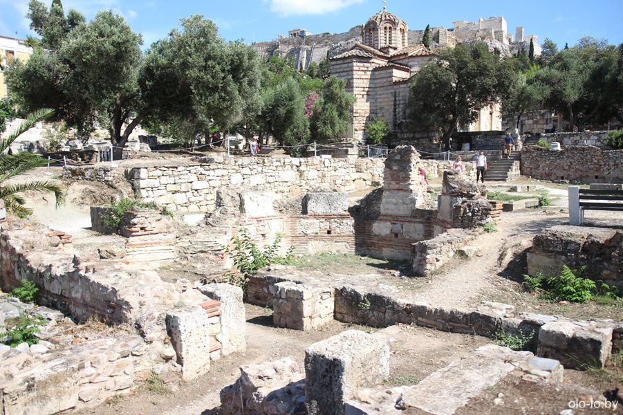 Один из старейших афинских храмов — церковь Святых Апостолов Солакиса. Церковь построена предположительно в 10-ом веке в византийском стиле. На момент нашего посещения почему-то была закрыта.