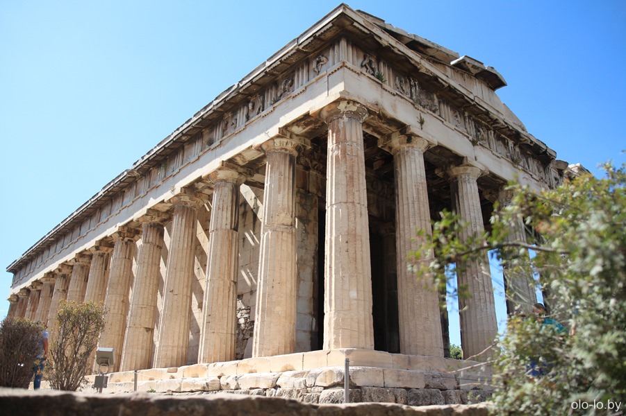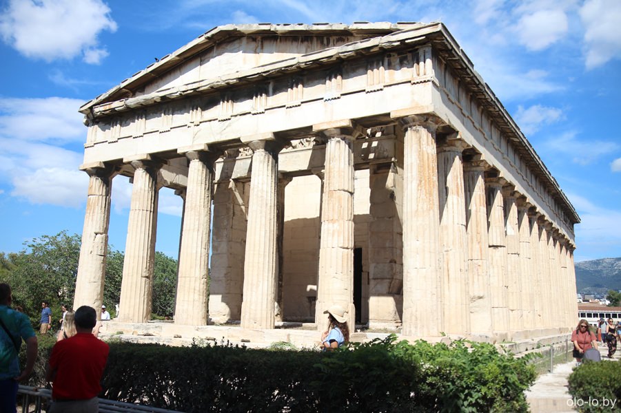 Наиболее сохранившиеся здание греческой Агоры дошедшее до наших времен в почти первозданном виде — храм Гефеста. Храм начали строить в V веке даже немного раньше Парфенона, а достроены они были примерно в одно время. С приходом христианства на греческие земли и вплоть до 19-ого века храм использовался, как православная церковь, а в первой половине 19-ого здесь находился археологический музей. Сейчас вход храм Гефеста закрыт и посмотреть на него можно только снаружи.