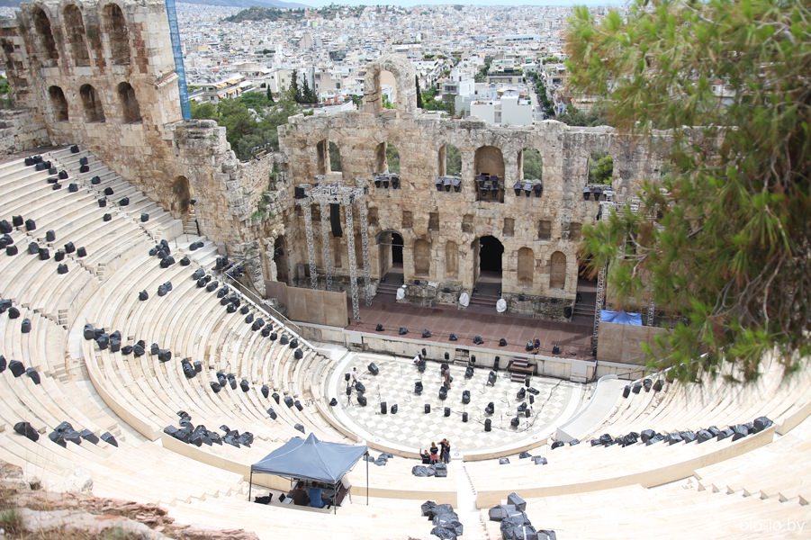 Одеон Герода Аттики (греческого оратора) построен в 165-ом году и относится к римскому периоду Афин. За исключением некоторых изменений одеон дошел до нас в первозданном виде. Ежегодно здесь проходит Афинский фестиваль искусств.