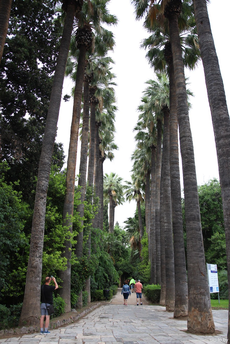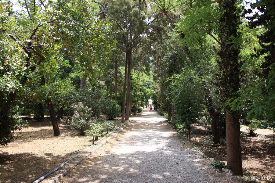 Над Афинами сгустились тучи и пошел небольшой дождь, но мы успели скрыться под кронами деревьев в саду за зданием парламента. Национальный сад был заложен в 1838-ом году для королевы Амалии. Говорят, что 12 пальм (на фото ниже) были высажены королевой лично.