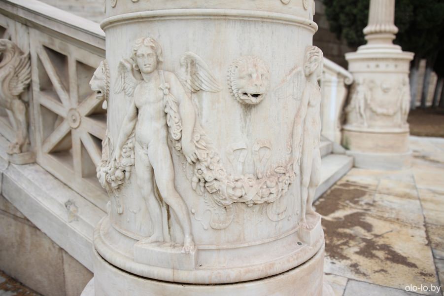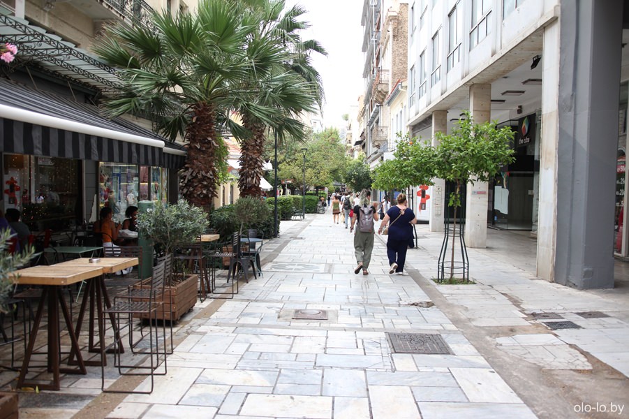 На вершине холма в окружении большого количества туристов и в 30+ градусную жару находиться сомнительное удовольствие. Уже пешком спустились с холма и продолжили изучением достопримечательностей Афин.