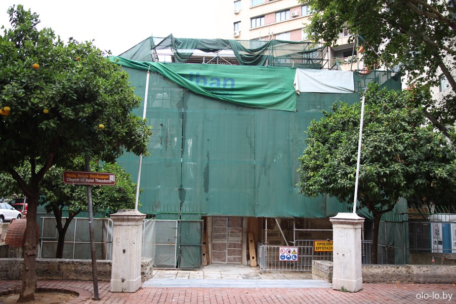 Одна из старейших церквей Афин — церковь Святых Федоров, в момент нашего посещения, была плотно заставлена строительными лесами (посмотреть как выглядит церковь можно тут). Храм был построен во второй половине 11-ого века, но сильно пострадал во время греческой революции в начале 19-ого века, в результате чего были утрачены византийские фрески.