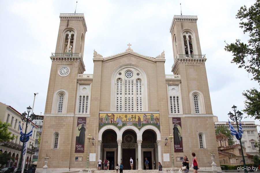 Главный храм столицы Греции — собор Благовещения Пресвятой Борогодицы, строился в течении 20 лет и был освящен в 1862-ом году. В соборе хранятся мощи Святого Филофея и патриарха Григория V, замученных в разное время турками. Собор так же является официальной резиденцией архиепископа Афинского и всея Эллады.