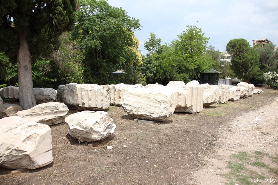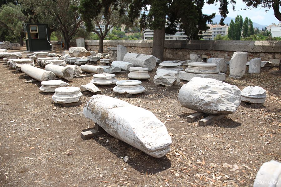 Прямо за аркой находится храм Зевса Олимпийского, точнее то что от него осталось. Олимпейон строился в период с 6 по 2-ой веки до нашей эры. В 3-ем веке храм был значительно поврежден при набегах древнеримских племен, а в последующие века использовался для строительства других сооружений.