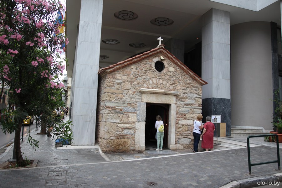 Перемещаясь по улицам Афин набрели на небольшой храм, который можно сказать встроен в более современное здание. Церковь Святой силы (или Агия Динами), была построена в 16-ом веке, разрушена во время греческой революции и позднее восстановлена. При перестройке района и строительстве здания Министерства образования и религии, большинство построек было снесено, но церковь сохранили.