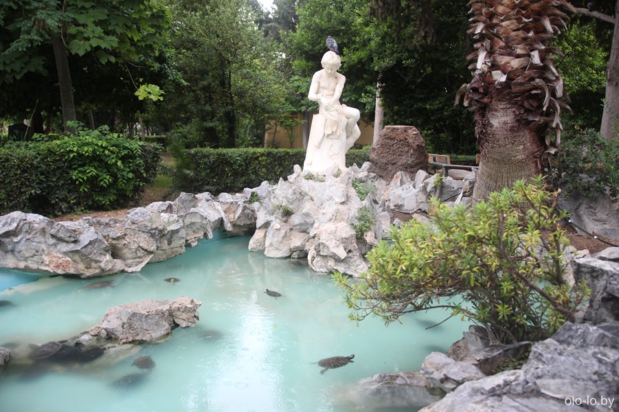 Помимо большего количества растений, в парке есть статуи, руины колонн и небольшой зоосад.