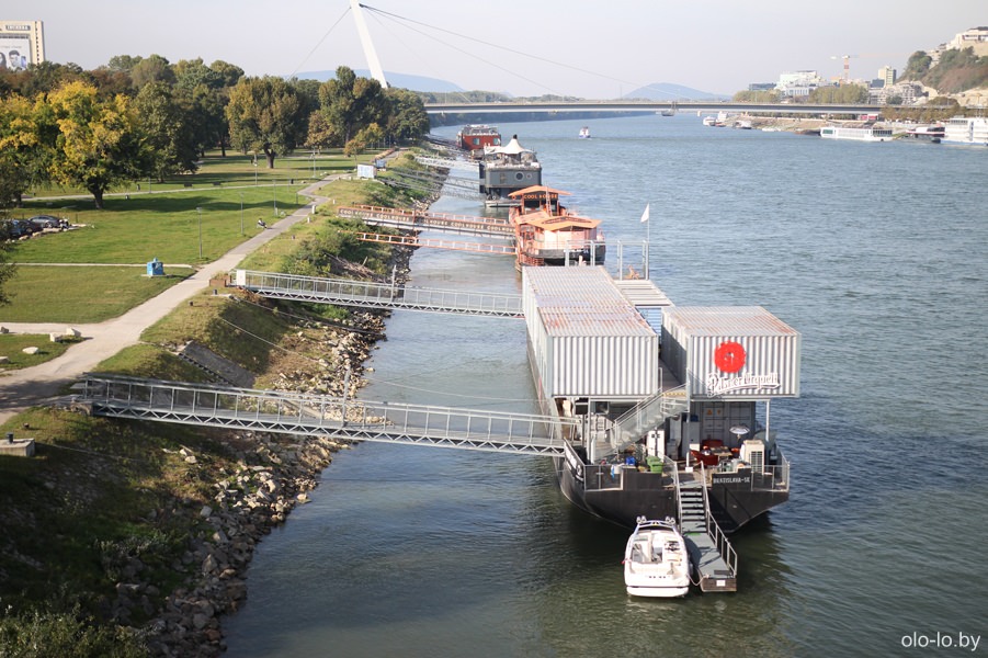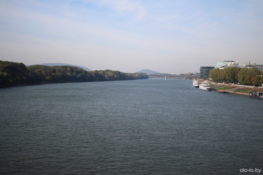 Вышли к берегу Дуная, который протекает через Братиславу разделяя ее на две части.
