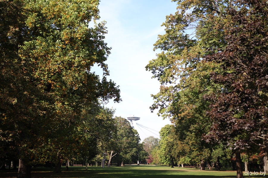 А в сквере рядом, окруженный еще зелеными деревьями, спрятался монумент Победе, посвященный освобождению Братиславы от захватчиков в 1945-ом году.