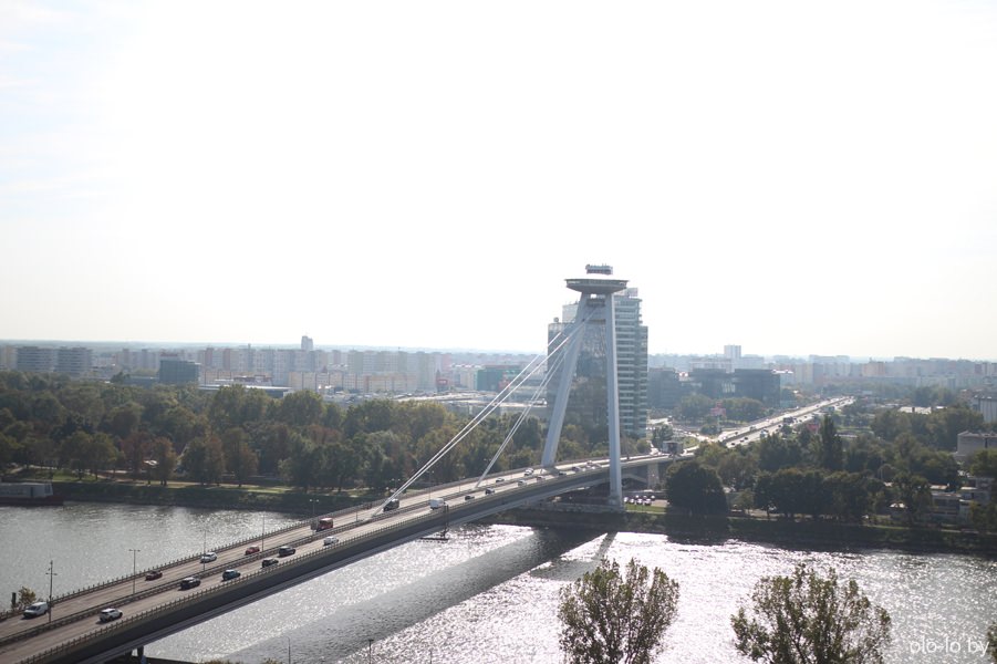 В верхней части моста SNP находится смотровая площадка и работает ресторан UFO. Подъем на смотровую площадку стоил почти 10 евро.