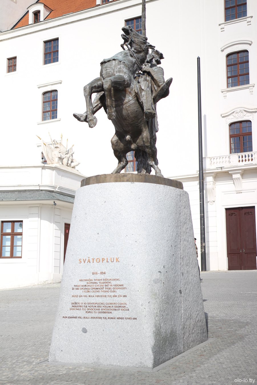 В 2010-ом году, перед замком установлена конная статуя князя Святополка I. Князю, который правил в конце 9-ого века удалось объединить множество мелких государств в Великую Моравию.