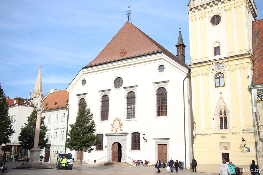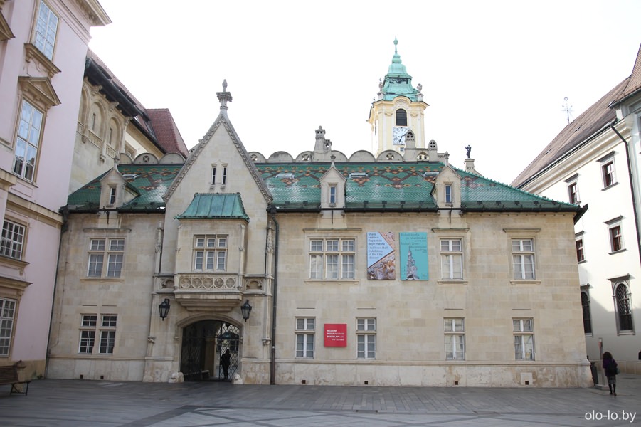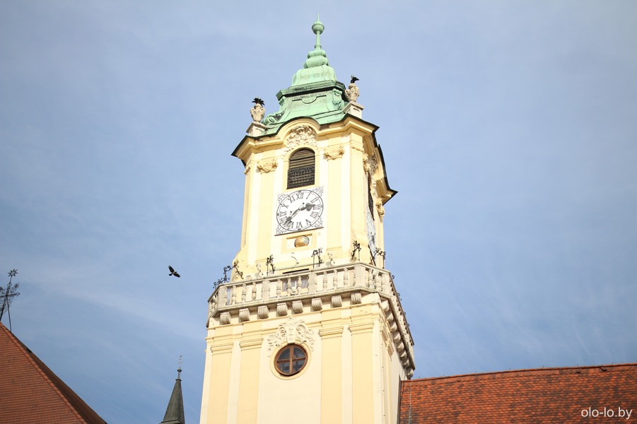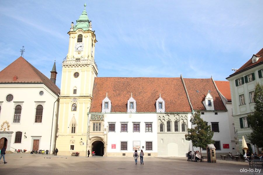 Как и полагается по старым канонам на главной площади города строили ратуши. Старая ратуша Братиславы появилась здесь в 13-ом веке, точнее сразу была построена готическая башня, а пристройки к ней появлялись вплоть до 15-ого. Долгое время в здании заседал городской совет, который впоследствии переехал в бывший дворец архиепископа. Сейчас здесь расположился небольшой музей, главный экспонат которого, пушечное ядро попавшее в ратушу во время наступления наполеоновской армии.