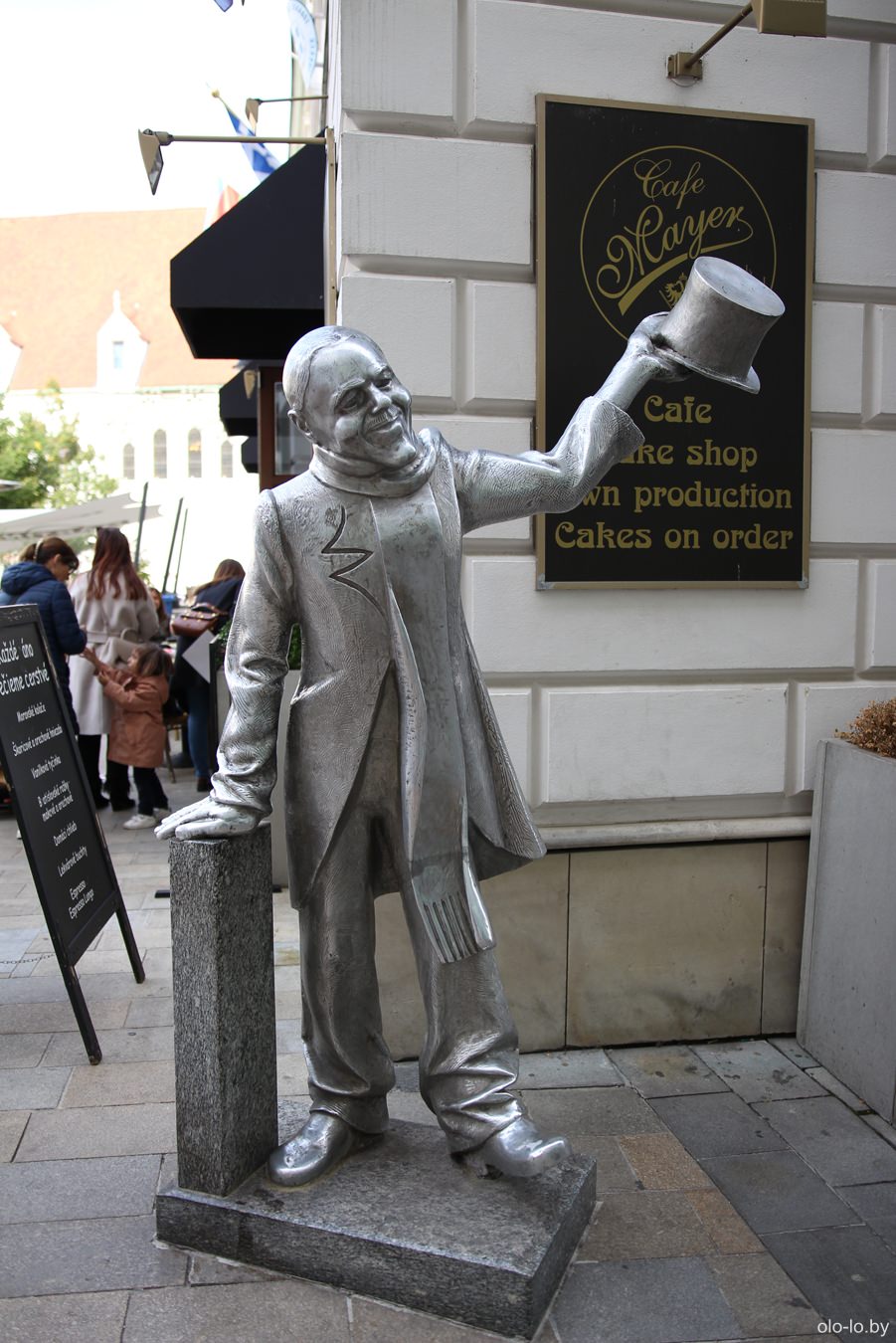 Не менее интересный памятник стоит у кафе «Майер». Скульптура Игнаца Ламара или «Красавчика Наци», так же появилась здесь в 1997-ом году и посвящена, доброму человеку и любимцу горожан, который, как можно догадаться, был частым посетителей кафе. Впрочем и само кафе «Майер» заслуживает внимание, так как отрылось более века назад, и с тех пор радует десертами своих посетителей.