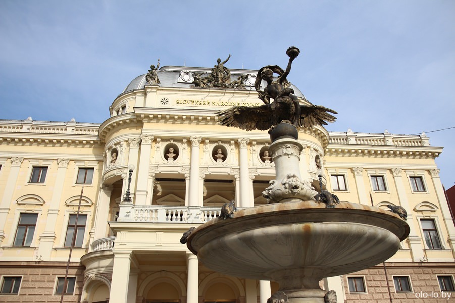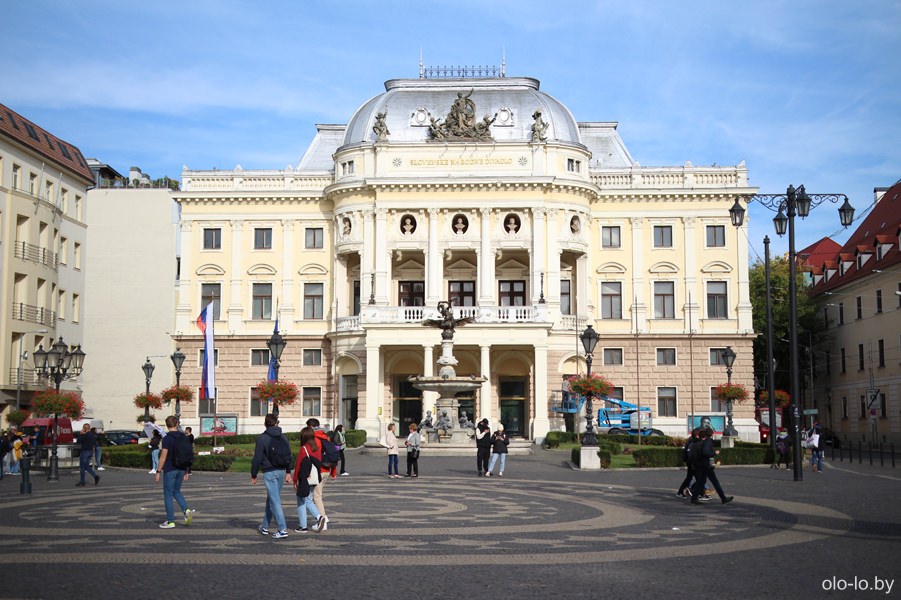 Вышли к старому зданию словацкого национального театра, построенному во второй половине 19-ого века.