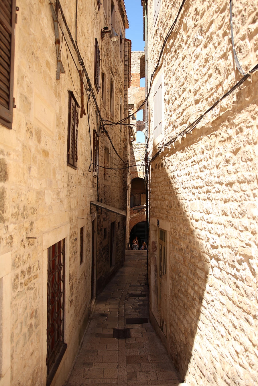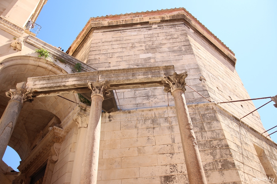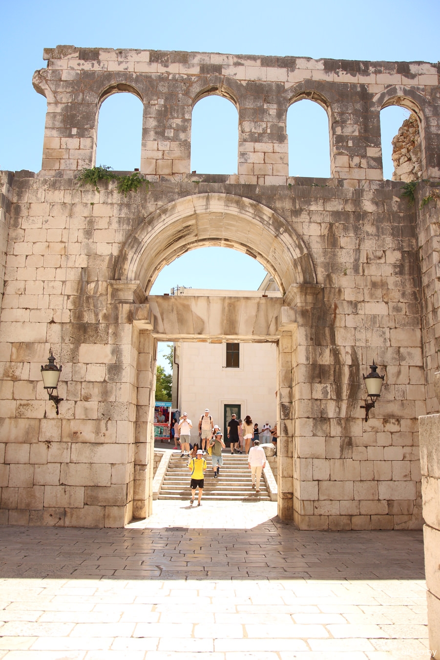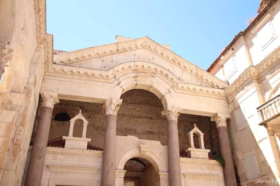 Пройдя через арку попадаем на территорию дворца Диоклетиана. Сам дворец строился, как личная резиденция императора на стыке 3 и 4-ого веков, а в последствии стал прародителем Сплита, постепенно прирастая постройками за пределами крепостной стены. Дворец Диоклетиана вместе с историческими зданиями Старого города включен в список Всемирного наследия ЮНЕСКО. Днем здесь многолюдно.