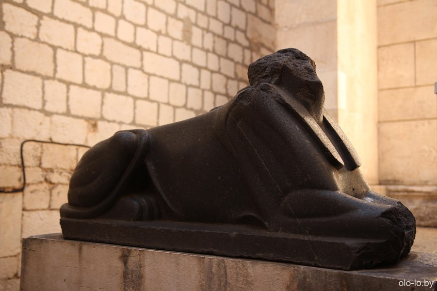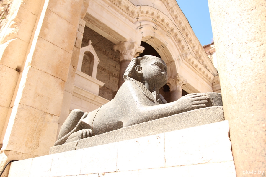Еще при Диоклетиане во дворец было доставлено, предположительно, 12 сфинксов, возраст которых составляет больше 3000 лет. До нас дошло только два из них. Один расположен у Перестиля, парадной площади дворца.