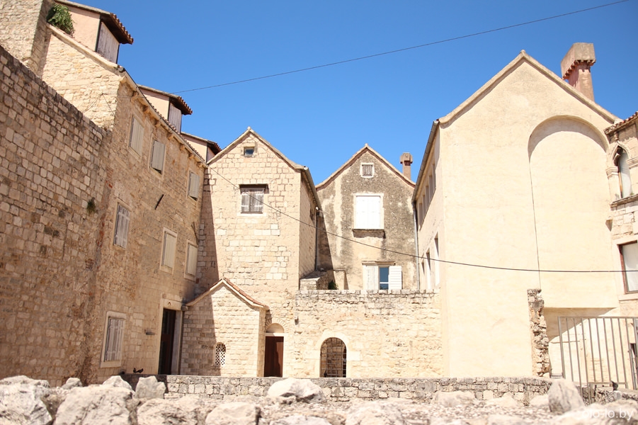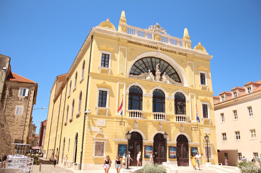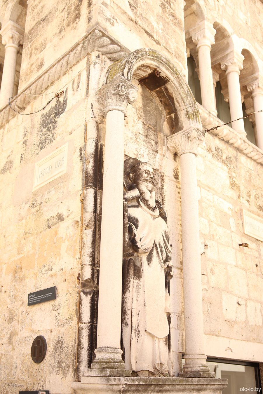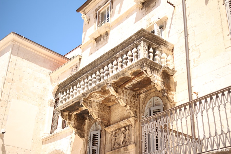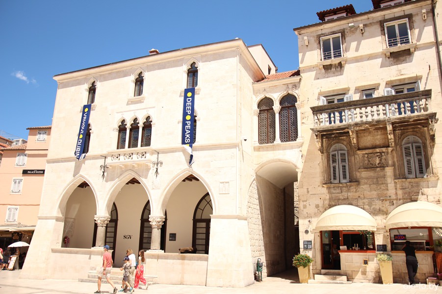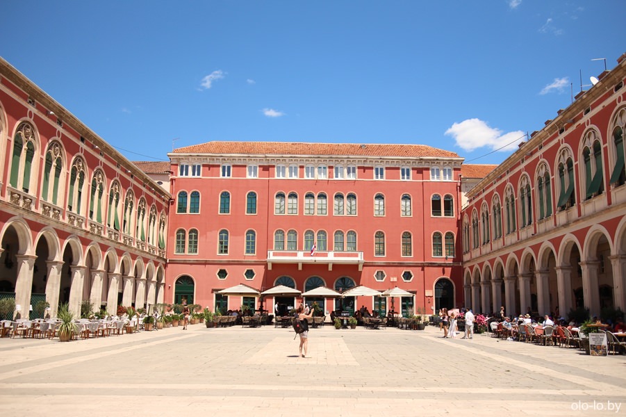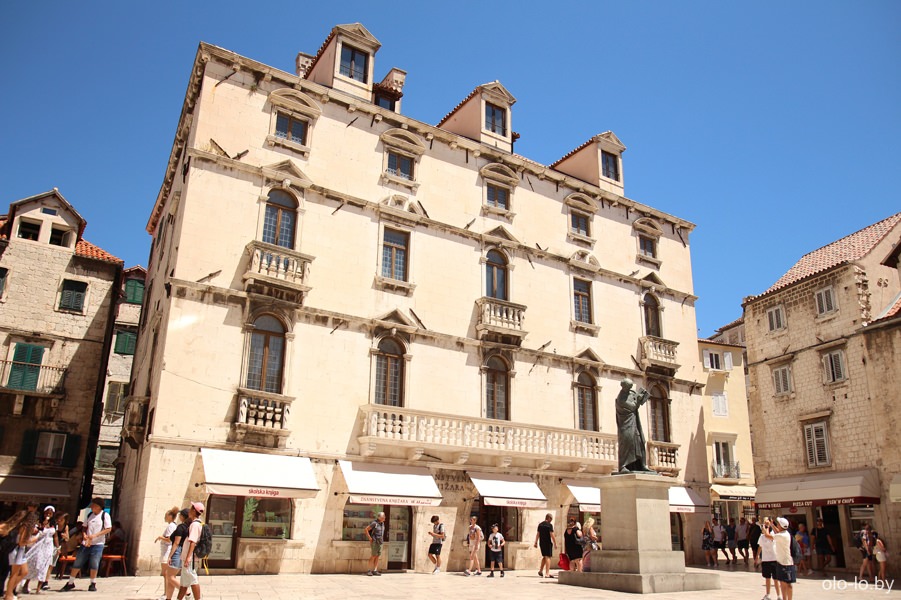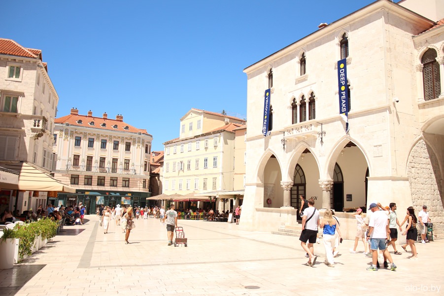 Вышли на Народную площадь, которая была центром городской жизни средневекового Сплита. Здесь находится городская ратуша с тремя готическими арками построенная в 15-ом веке. Второй этаж результат масштабной реконструкции 19-ого века, заменившей большое арочное окно на окна поменьше. На первом этаже работает Этнографический музей.