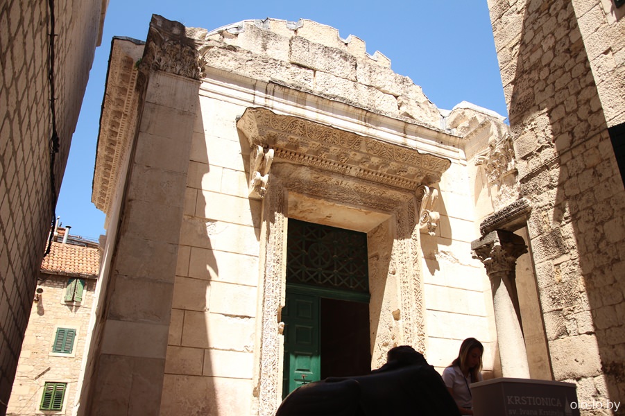 Напротив церкви находятся Серебряные ворота, построенные в 6-ом веке и служившие одним из входов во дворец Диоклетиана. Всего было построено четверо ворот, но до нашего времени более-менее сохранились Серебряные и Золотые, к которым мы еще вернемся далее.