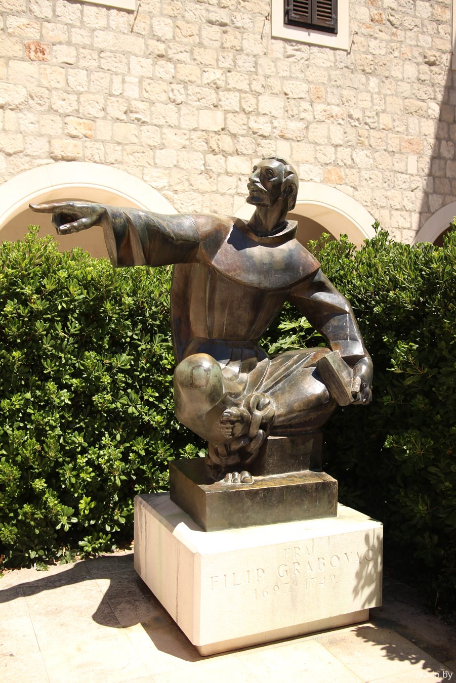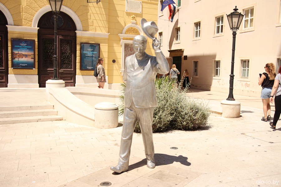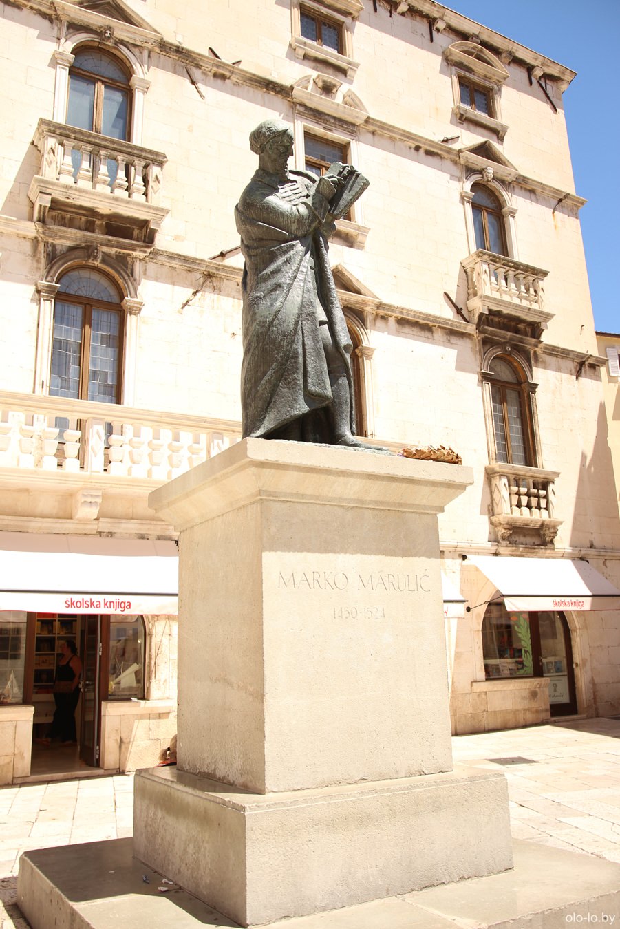 Перед дворцом установлена бронзовая статуя Марка Марулича, хорватского писателя и гуманиста.