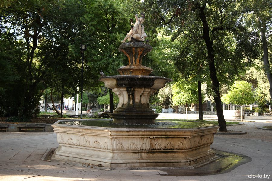 В тени деревьев скрылся фонтан Штросмайера установленный в 1914-ом году.