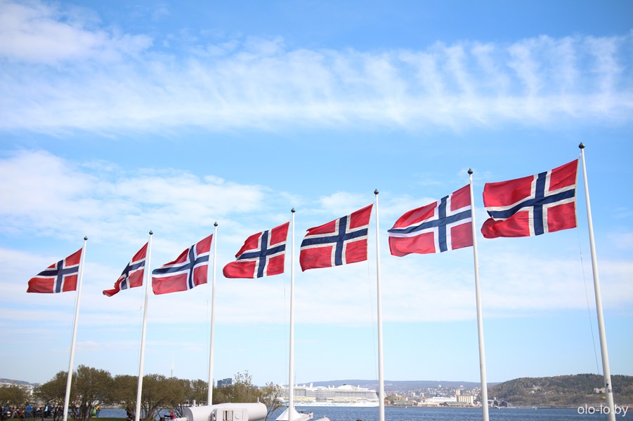 У берега находится памятник военным морякам, погибшим во время II мировой войны. В день нашего посещения Бюгдоя у памятника проходили торжества в честь освобождения от фашизма, который в Норвегии отмечают 8 мая.